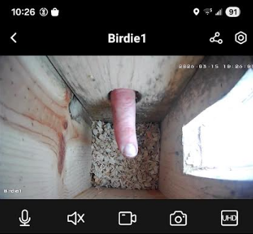 The house is the same as last year, but this time I left it out all year long, after cleaning it up once the last hatchling left. Back then I added fresh wood shavings. (I put on a temporary roof without the camera for the winter.) I’m thinking the birds would be more comfortable in a ‘seasoned’ cavity. I checked a few times during the year to see if anyone set up camp, but no one did.